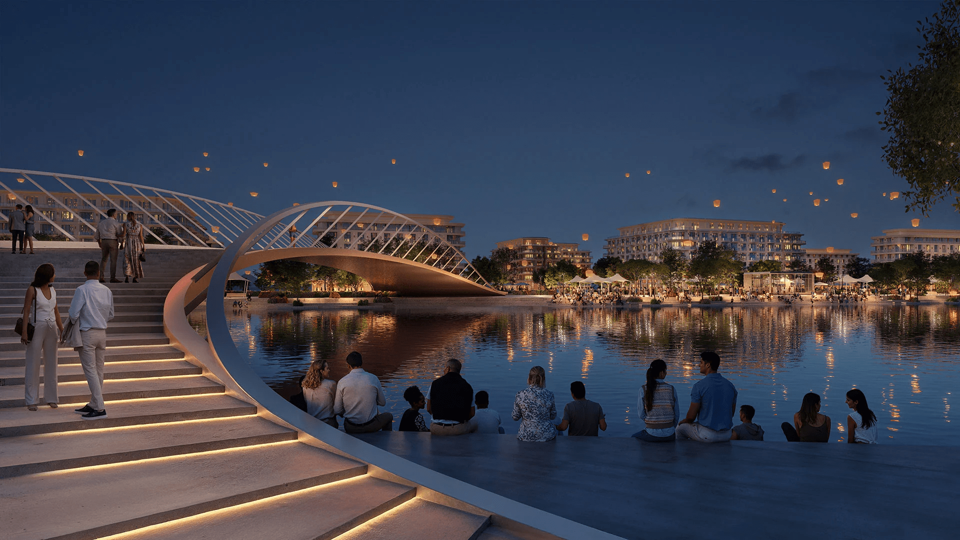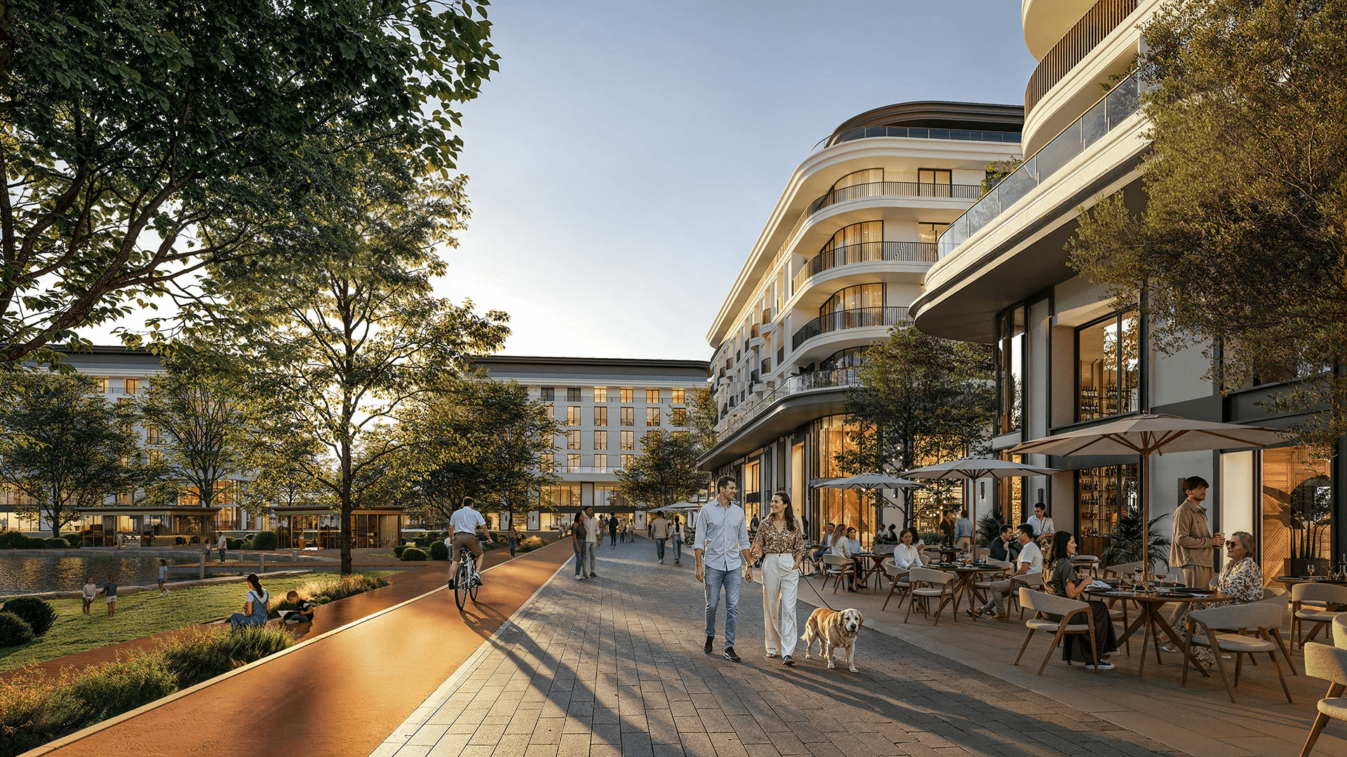 Эта зона расположена рядом с главным центром проекта, где будут жилые здания, отели, торговые и ресторанные пространства.